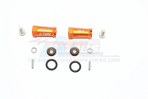 GPM Racing Aluminium Wheel Hex Adapters 27MM Width (Use For 4MM Thread Wheel Shaft & 4MM Hole Wheel) - 1Pair Set Orange for Axial SCX10 II