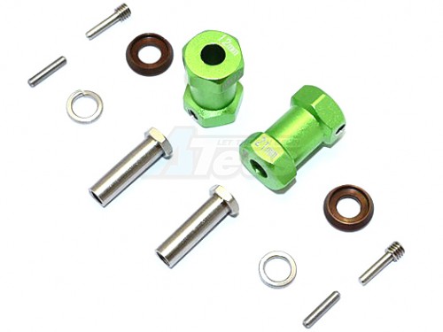 GPM Racing Aluminium Wheel Hex Adapters 21MM Width (Use For 4Mm Thread Wheel Shaft & 5MM Hole Wheel) - 1Pr Set Green for Axial RR10 Bomber