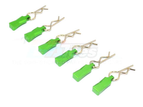 GPM Racing Body Clips + Aluminium Mount For 1/10 To 1/8 Models - 6Pcs Set Green