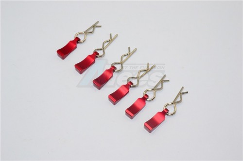 Body Clips + Aluminium Mount For 1/10 To 1/8 Models - 6Pcs Set Red by GPM Racing