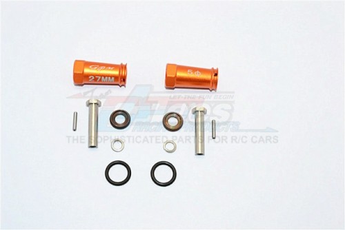 GPM Racing Aluminium Wheel Hex Adapters 27Mm Width (Use For 4Mm Thread Wheel Shaft & 5Mm Hole Wheel) - 1Pr Set Orange for Axial SCX10