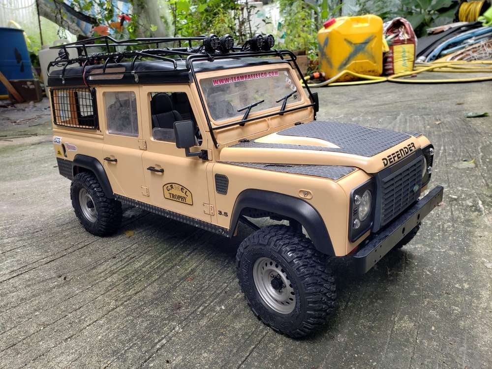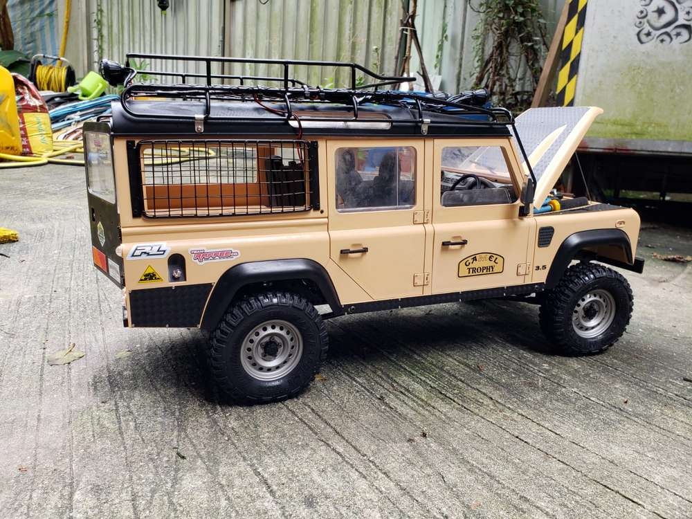 - This roof rack is made to fit the Team Raffee Co. D110 Defender Station Wagon Hard bodies. This kit also includes a front windscreen guard rear side window guard and a rear ladder and all the hardware to attach it also includes 5 LED lights and light buckets. Measurements: