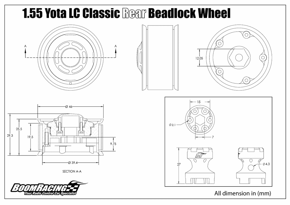 - Factory description: Boom Racing 1.55 Yota LC Classic Rear Beadlock Wheels (2) with 3mm Wideners (2)