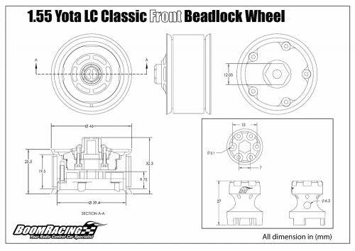 - Factory description: Boom Racing 1.55 Yota LC Classic Front Beadlock Wheels (2) with 3mm Wideners (2)