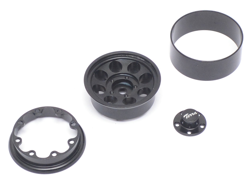 1.55 Terra Classic 8-Hole Aluminum Beadlock Wheels w/ 3mm Wideners (2) Black by Boom Racing