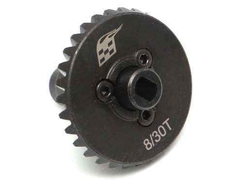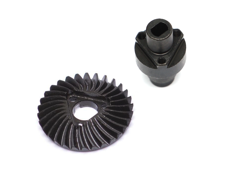 Hardened steel 30T/8T helical bevel gear and input shaft and differential locker (spool) set. Will fit the Axial SCX10 II AR44 Axle Housing (AX-31401) or Boom Racing PHAT Axle (BR955015) / BRX70 and BRX90 PHAT Axles.