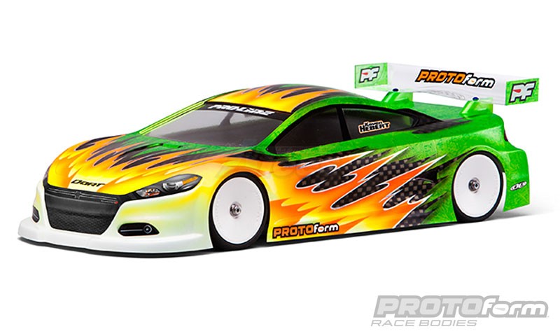 The PROTOform Dodge® Dart has already received EFRA (#4044) approval and fits all Global Body Spec requirements. It is available in both light (.025") and regular (.030") weight genuine Lexan® and comes with a detailed decal sheet, window masks, overspray film and wing mounting hardware.