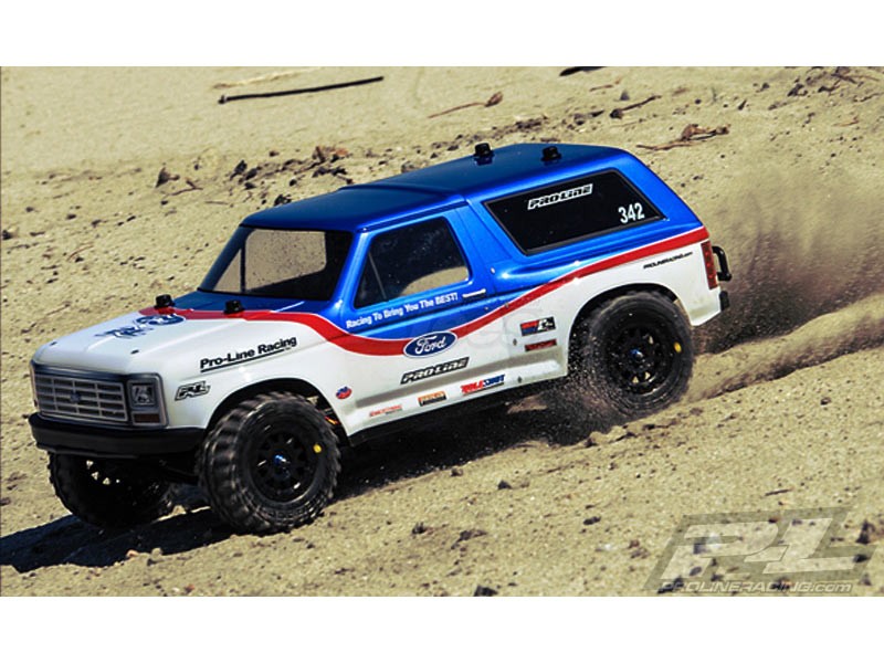 This is a 1981 Ford Bronco Clear Body. It is time to man up and go REAL with Pro-Line’s new 1981 Ford Bronco body for Short Course Trucks! Pro-Line now gives you the option to convert your Slash® and SC10 Short Course Truck into a True Scale old school Bronco that is popular among full scale off road racers. This Bronco body is perfect for making your friends jealous and giving your Truck a completely different look! Don’t show up to the local bash spot or track with the same body as everyone else… Get your True-Scale 1981 Ford® Bronco body from Pro-Line today!