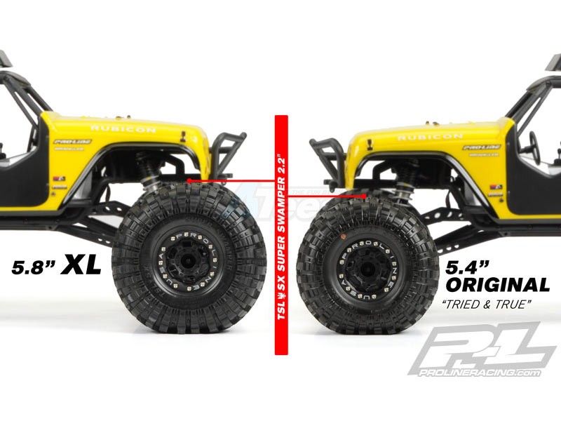 - This is a pair of Super Swamper XL 2.2” Tires. Under official license from Interco Tire Corporation, Pro-Line is proud to announce the 2.2” TSL SX Super Swamper XL in the legendary G8 compound. With “almost scale” not being acceptable and access to Interco’s design data, Pro-Line’s engineering staff has reproduced the Super Swamper in a scale configuration matched by none. The new 2.2” XL is perfect for scale crawlers that want maximum ground clearance and unmatched rock crawling performance.