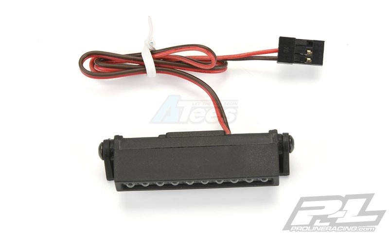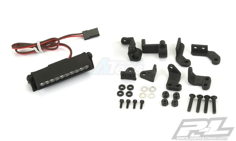 • This is a 2” LED Light Bar Kit. Pro-Line is proud to introduce a new 2” LED Light Bar Kit with real, working LED Lights! The 2” Light Bar comes with 10 LED Light bulbs pre-wired with a 12” long cable that can plug directly into your receiver for power. The Lights are rated for 6V to 12V power, so you have the option to plug directly into a 3S lipo power source for Super-Bright LED Light! The LED Lights are housed in a durable Black Nylon housing branded with a P-L logo and includes the mounts and hardware you need to do a custom install on your Rock Crawler, Rock Racer, 1:8 MT and 1:10 MT vehicle. The 2” LED Light Bar has also been designed to mount directly to the 6278-00 Overland Scale Roof Rack for an integrated scale appearance. Night Crawling has become the new cool thing to do with your scale rig, don’t get left in the Dark! Get Pro-Line’s new 2” Super-Bright LED Light Bar Kit for your truck today!