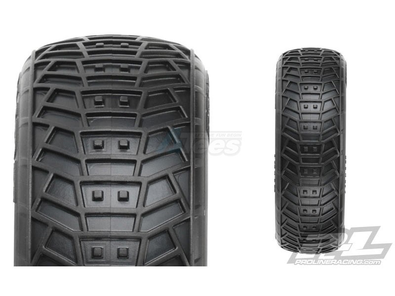 • This is a pair of Positron 2.2” 2WD Front Buggy Tires. The future of 1:10 Buggy Tire Performance is here with Pro-Line’s all-new 2.2” Positron Front Tire! Designed from the ground up with an all-new carcass shape and futuristic directional tread design, the Positron delivers true next generation performance with improved grip and corner speed on indoor clay tracks. The tread design pays homage to the Electron and ION tire before it with the 2 center pins boxed in by connected bars for a familiar Pro-Line signature look. From there the connected bars shoot off at angles that have been specifically designed to provide ideal steering feel when combined with the Positron Rear tire all while lasting longer than the competition. The Positron is directional, which adds another tuning option for the racers always looking for that extra edge since it will perform differently depending on which direction it is run. Indoor season is upon us; get the newest and best race tire for your buggy – the Pro-Line Positron!
