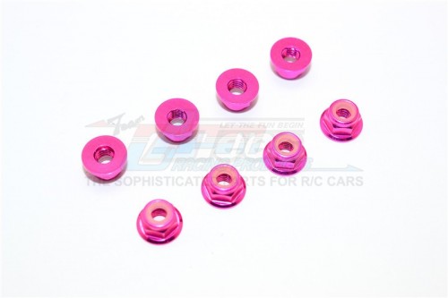 Aluminum 4mm Flanged Lock Nuts Pink by GPM Racing