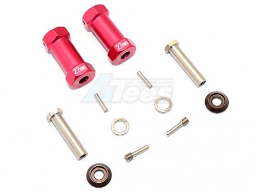 GPM Racing Aluminium Wheel Hex Adapters 27MM Width (Use For 4MM Thread Wheel Shaft & 5MM Hole Wheel) - 1Pr Set Red for Axial RR10 Bomber