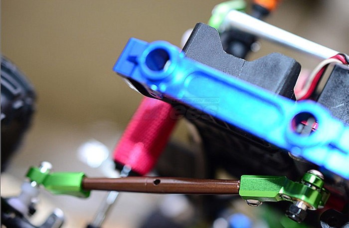 • Factory description: GPM Racing Axial SCX10 II Spring Steel Adjustable Servo Rod With Aluminium Ends & 25T Servo Horn - 2Pcs Set