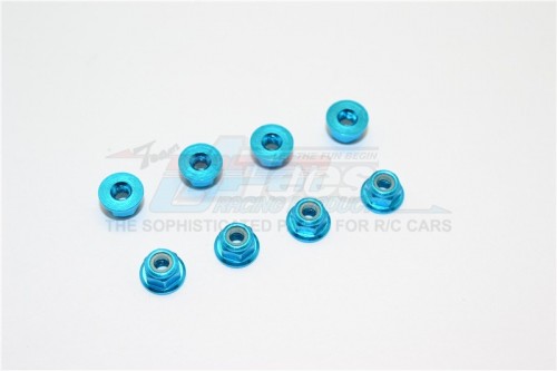 GPM Racing ALUMINIUM 3MM FLANGED LOCK NUTS-8PCS Light Blue