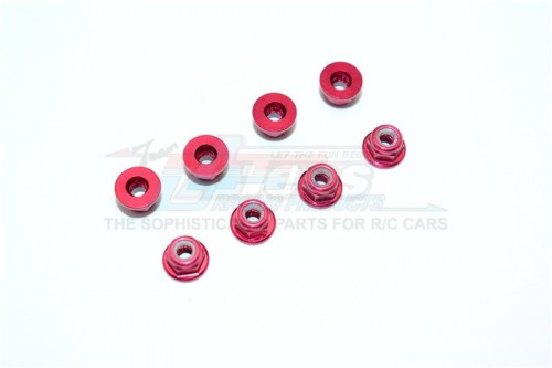 GPM Racing ALUMINIUM 3MM FLANGED LOCK NUTS-8PCS Red