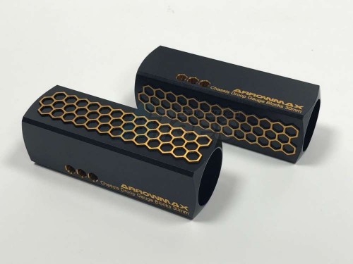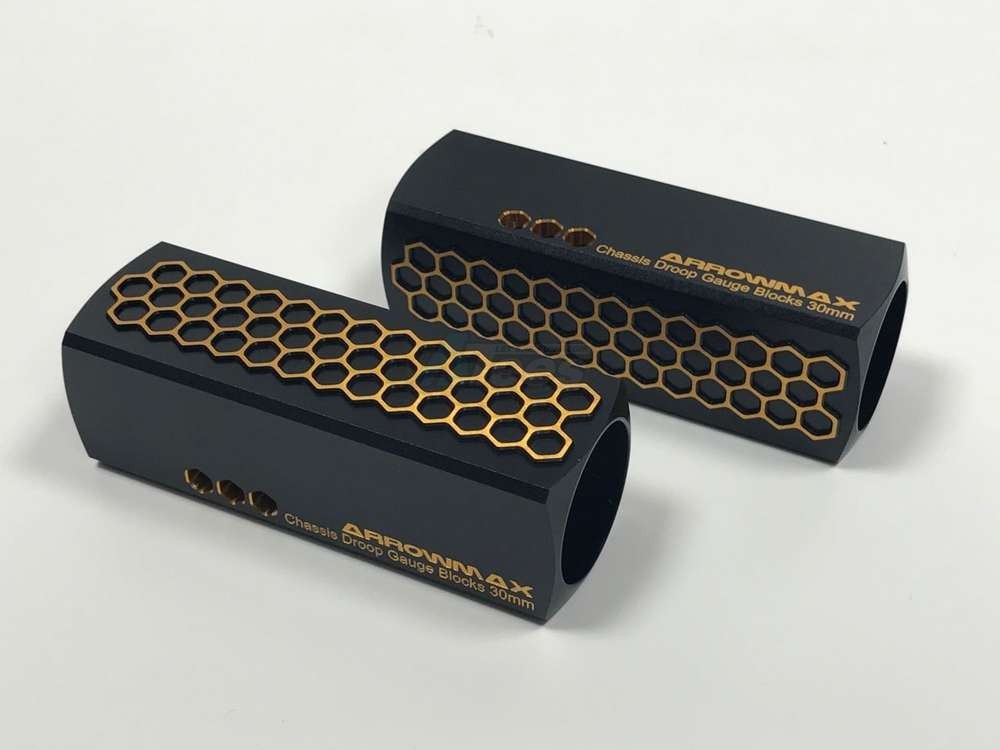 • Factory description: Arrowmax Chassis Droop Gauge Support Blocks 30mm 1/8 Off-Road Black Golden (2)