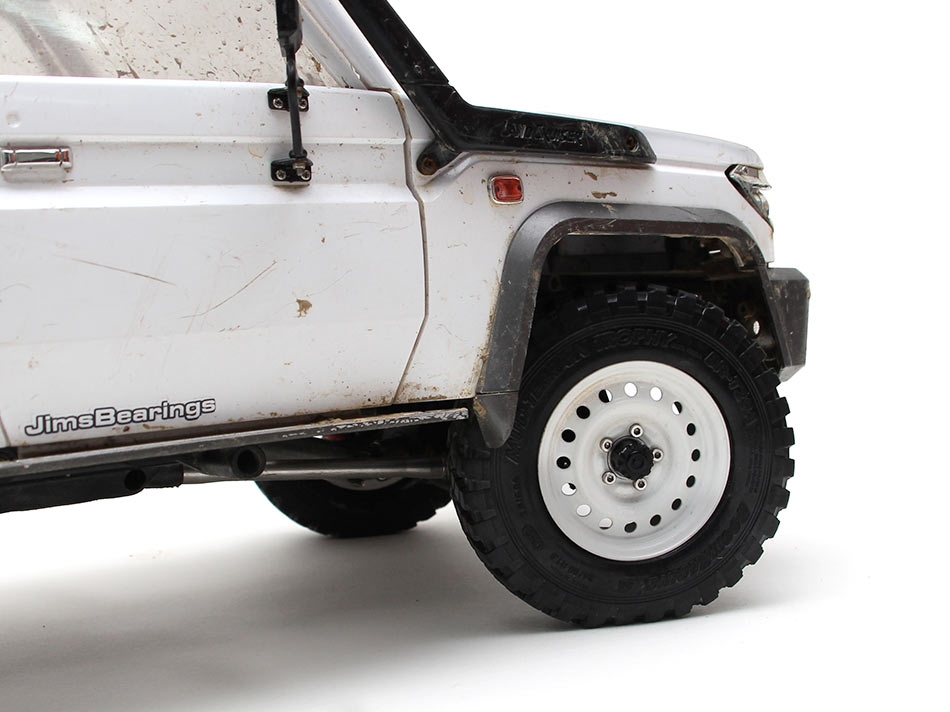 Very scale-looking. Fits the RC4WD 1.9. Lands well. Improves the performance in a way as it easily sticks due to the material of the tires.