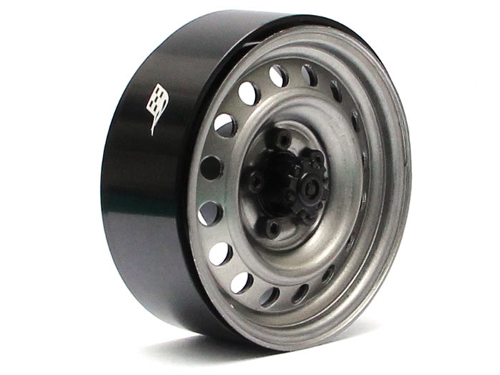 1.9 Narrow 21mm Badass Classic 16-Hole Steelie & CNC Aluminum Beadlock Wheels w/ Center Hubs (Front) 2pcs Gun Metal by Boom Racing