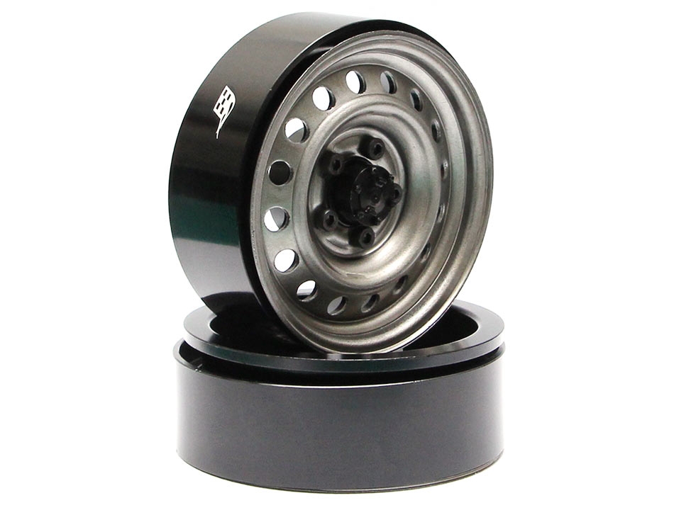1.9 Narrow 21mm Badass Classic 16-Hole Steelie & CNC Aluminum Beadlock Wheels w/ Center Hubs (Rear) 2pcs Gun Metal by Boom Racing