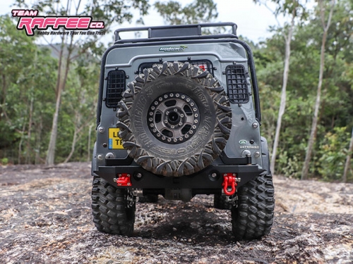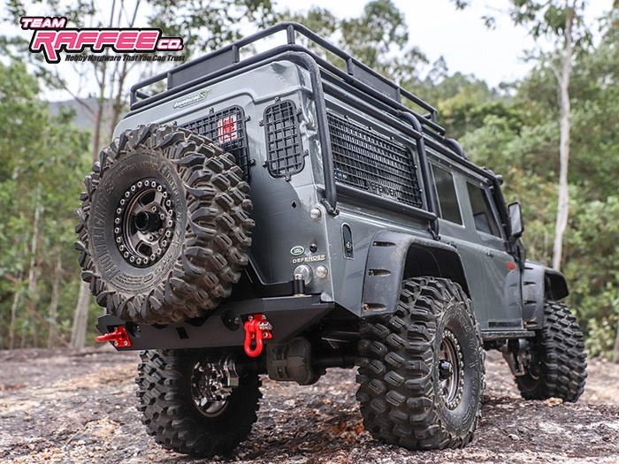 - This is a Tough Steel Rear Bumper for the TRX-4 with spare wheel mount. This rear bumper comes with all the hardware needed to mount it onto the chassis also has two shackles to attach tow straps and LED lights.