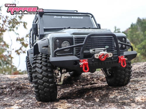 - This is a Tough Steel Front Bumper for the TRX-4. This front bumper comes with all the hardware needed to mount it onto the chassis also has two shackles to attach tow straps and LED lights.