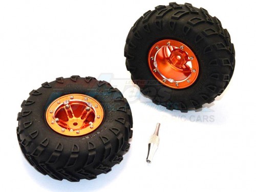 GPM Racing Aluminium 5 Poles Simulation Wheels In Silver Edge With 1.9 Tire & Hex Tool (All Silver Screws) - 1Pr Set Orange
