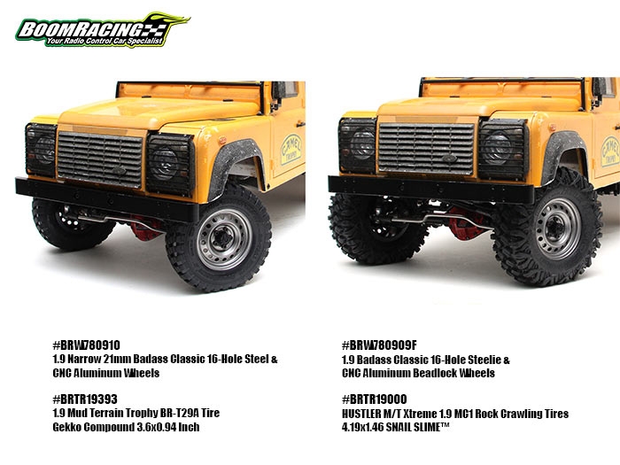 - Factory description: Boom Racing 1.9 Narrow 21mm Badass Classic 16-Hole Steel & CNC Aluminum Wheels W/ Center Hubs (Rear)