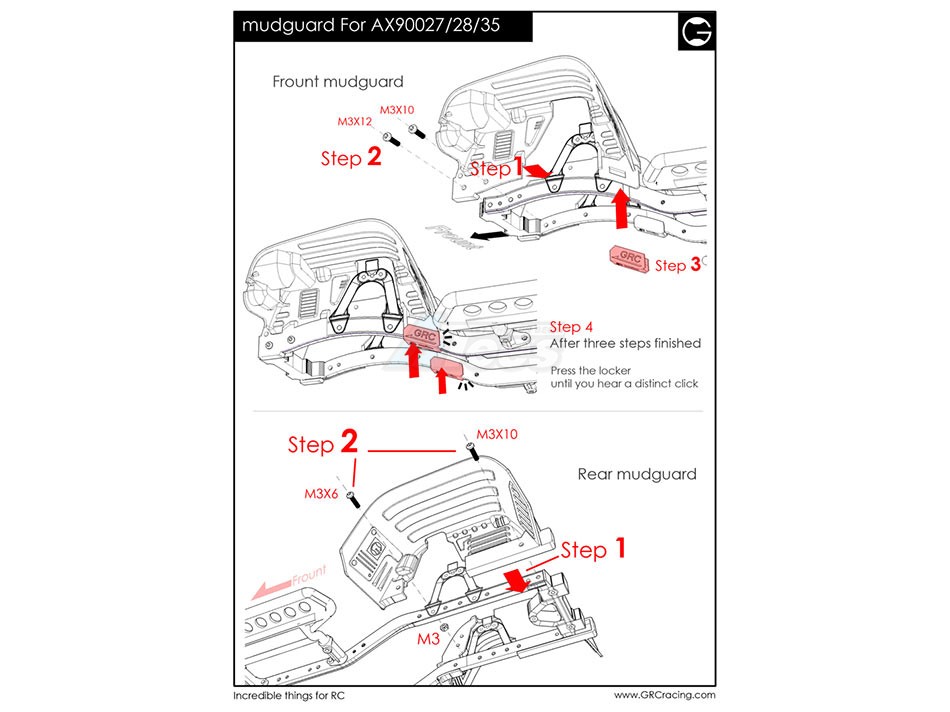 - Factory description: GRC Axial SCX10 3D PLA Front Inner Fender for Axial #90027 Jeep Wranger