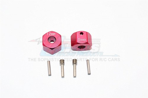 Aluminium Wheel Hex Adapters 12MM X 9MM - 2Pcs Set Red
