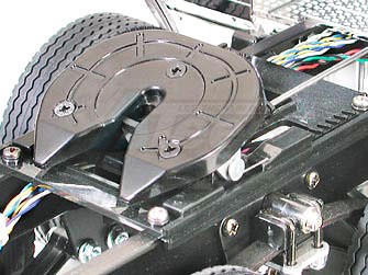 The Multi-Function Control Unit coordinates action with realistic sound, lights, and vibration, to achieve superior authenticity. A large speaker to be employed on the Tractor Truck Knight Hauler adds power to realism. This multi-function unit offers 24 radio-controlled sounds that have been digitally recorder from diesel engine. Recorded sounds included air dryer, air-brake, shift change, hazard signal, reverse signal, exhaust-brake, coupler connection, coupler separation, and more! A vibration unit attached to the rear portion of the speaker realizes realistic engine vibration synchronized with engine sound. Engine start-up and wind-down sequences yield incredibly realistic vibration. In addition to all of these features, a total of 9 different types of lights (20 in all) are featured. The Multi-Function makes your truck R/C experience as close as you can get to actually setting behind the wheel of a full size 18 wheeler!
