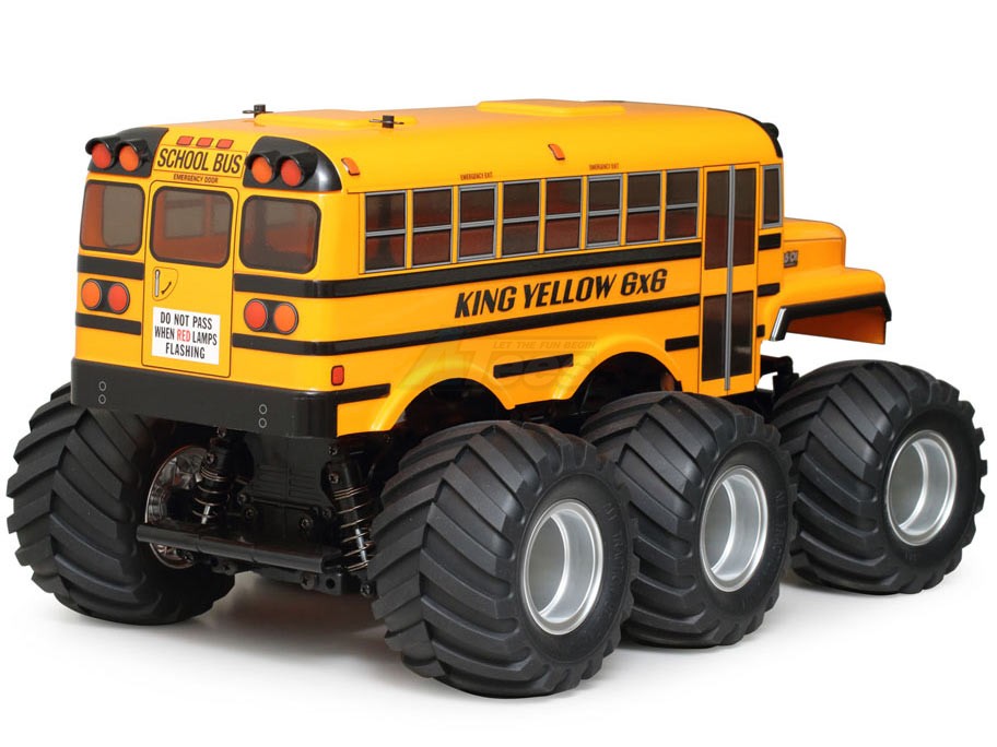 • The King Yellow is a 6x6 six-wheeled R/C vehicle ready to pound dirt, asphalt lots, and neighborhood streets across the country. It is the second kit of the series, where the Kong Head first made its appearance. The model utilizes a gear-driven 6WD chassis which is partially derived from the capable Tamiya GF-01 wheelie machine. The exceptional drive it provides will make for extreme fun while off-road driving. Furthermore, its powerful gear-driven setup allows the King Yellow to take on slope inclines of up to 40 degrees.