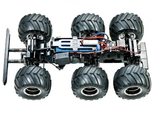 • The 6WD chassis employs 3 differential gears to transmit power from the front-center-mounted motor to all of the model's wheels