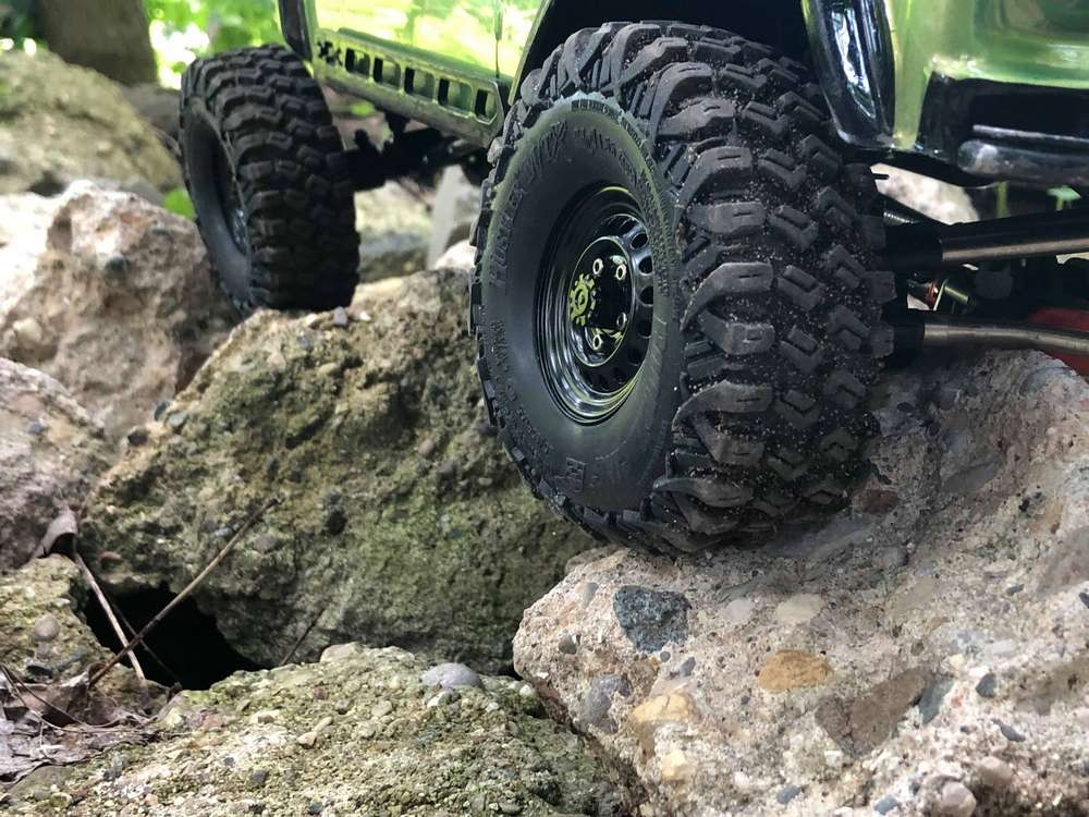 - Here is a great option for 1.55" tiny tire - HUSTLER M/TX 4.19" Max Class 1. This is the perfect tire size for running Class 1 comps. Aggressive tread pattern with dual-stage open/closed cell foams to maintain sidewall profile. Great for scale builds while giving great performance on the trails.
