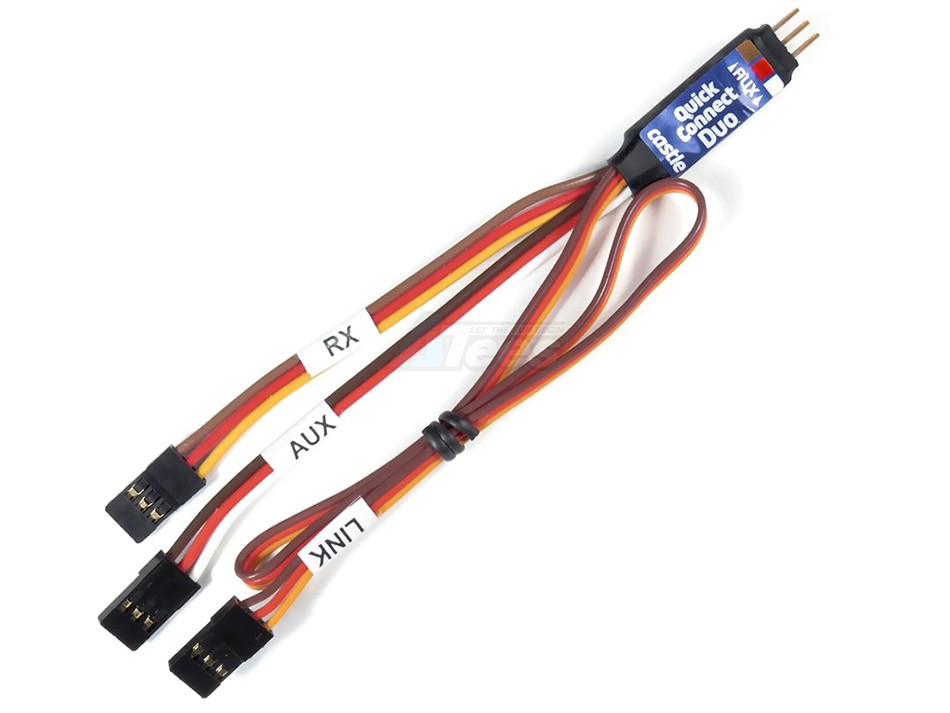 Quick Connect Duo detects the presence of a Castle Link adapter on the free lead and switches the controller's signal line from the receiver to the Castle Link.
