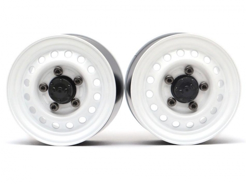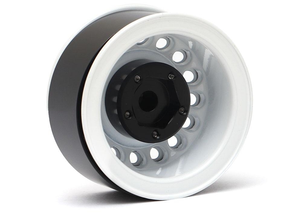1.55" 16-Hole Classic Steelie Reversible Beadlock Wheels (Rear) w/ XT504 Hubs White by Boom Racing