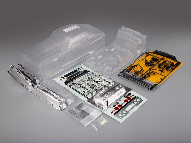 Long Wheelbase: 257mm ; Width:195mm Material: 1.0mm/0.039" Polycarbonate(from Japan) Including: 1-Clear body 1 pcs (Untrimmed; Body holes no punched) 2-Overspray film/Window masks 1 set 3-Basic decal sheet (Chromed) 1 set 4-Chromed plastic parts 1 set (Turn light bucket; Foglight bucket; Exhaust pipe; Doorknob; Oilcan cover) 5-Black plastic parts 1 set (Front spoiler; Wing mirror; Wiper; Rear wing; Number plate; Front/rear bumper decorative parts, Front radiator grill) 6-Chromed front/rear light bucket (lexan) 1 set 7-Chromed front/rear grill (lexan) 1 set 8-Body parts set (lexan) 1 set 9-Front/rear bumper (lexan) 1 set 10-Front/rear wheel arches (lexan) 1 set 11-Parts bag 1 set (Screw; LED stopper; 3M double-sided tape; Aluminum tape) 12-Instruction sheet