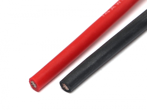 - Two pieces of 14AWG Silicon Cable electrical wires in black and red color.