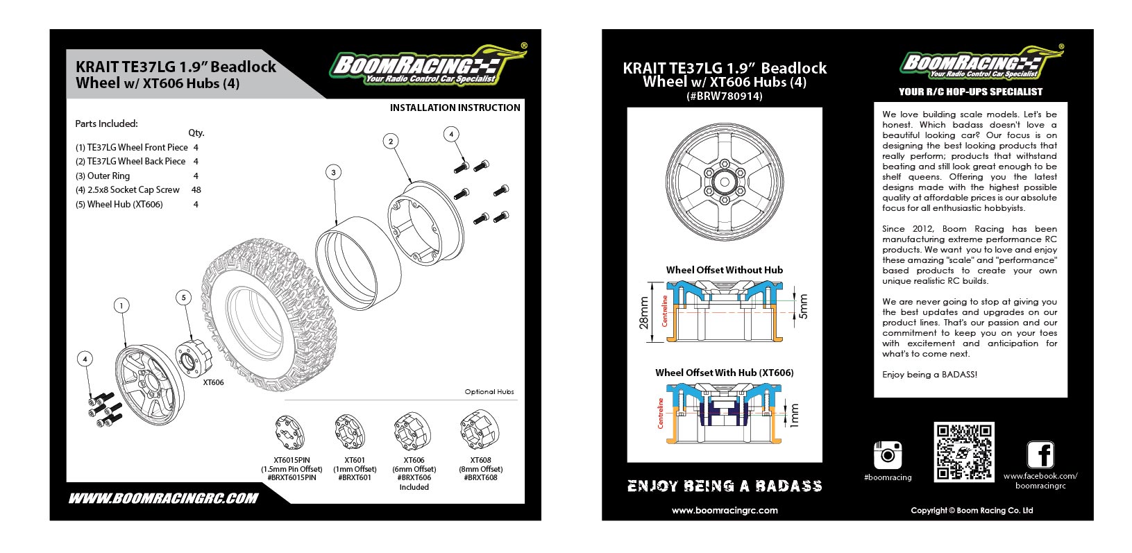 - Factory description: Boom Racing TE37LG KRAIT™ 1.9 Aluminum Beadlock Wheels w/ XT605 Hubs