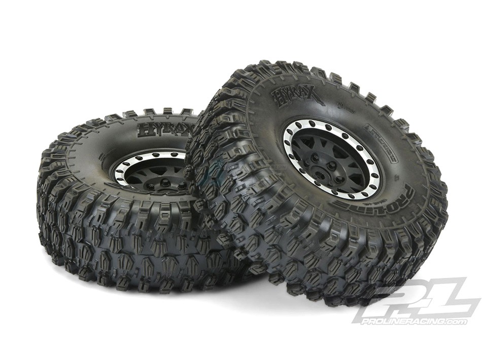 - This is a pair of pre-mounted Hyrax 1.9" Tires. The future of 1.9" Tire Performance has arrived with Pro-Line's Hyrax Tire mounted to Impulse Black/Silver Wheels! Designed for maximum grip on the toughest terrain, the Hyrax tire is ready for anything your Scale Adventure might throw at you.