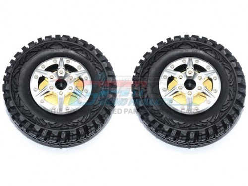 GPM Racing 1.9 Inch Aluminium 6 Poles Wheels With Brass Pendulum Weight + Crawler Tire - 2Pcss Set Silver for Traxxas TRX-4