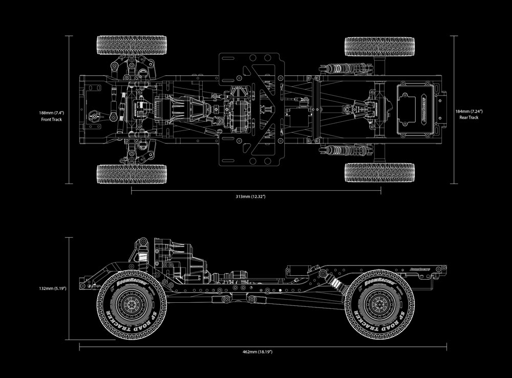 - Anti-Torque Twist T-Case reduces chassis torque twist under acceleration