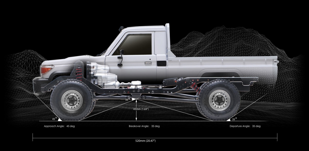 Over the years R/C crawlers have become more realistic in terms of performance and scale features. But to date, the crawler hobby industry hasn't seen a high performance "daily driver" – what we industry junkies describe as a 1:1 vehicle that can be purchased from the dealership, a truck without a suspension lift and big tires.So we set out to produce this truck - a performance based "daily driver" packed with innovations; fine enough to be a shelf queen and badass enough to be a beast on the trails!
