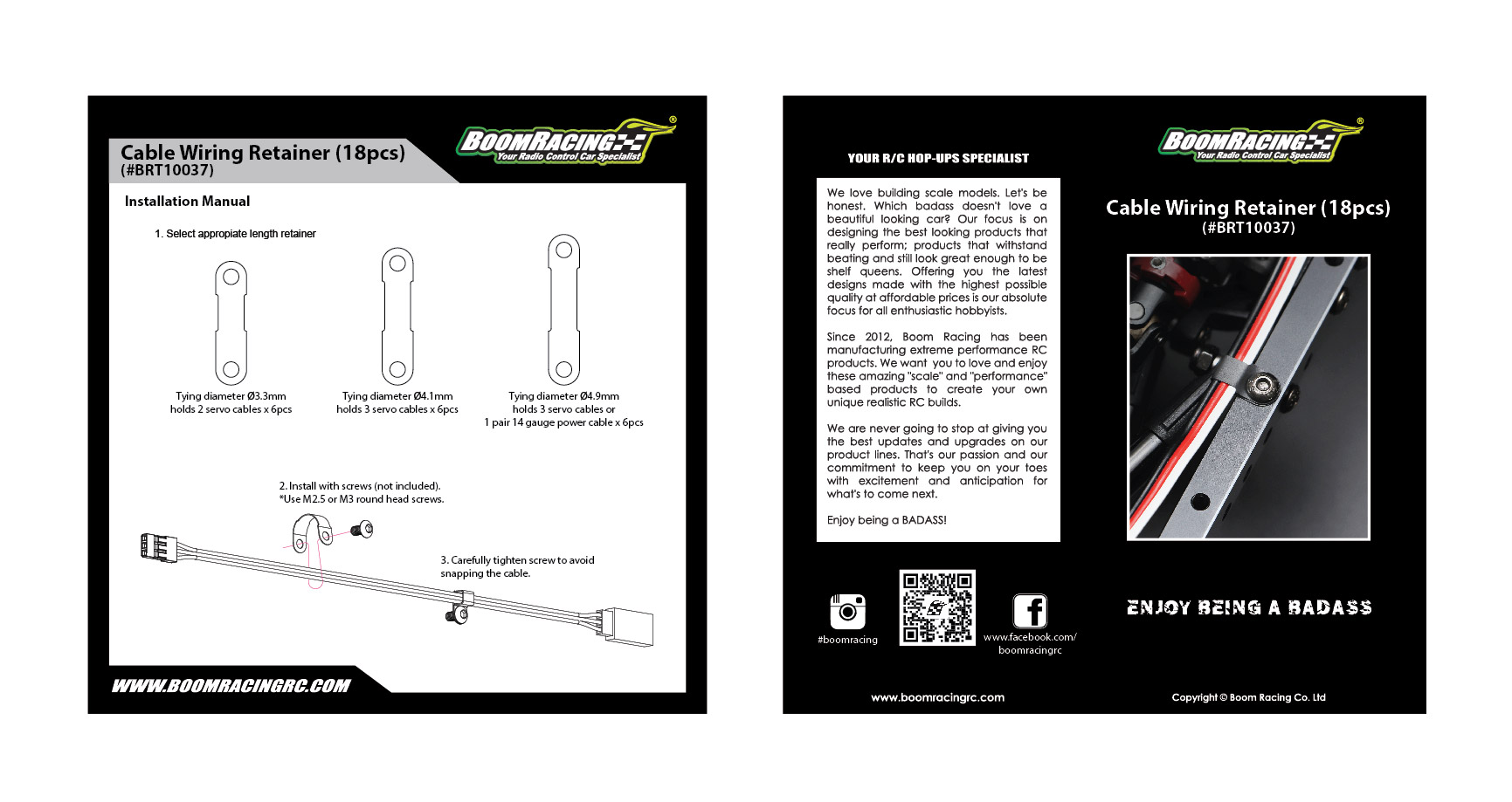 - Building a clean, organized chassis layout requires a well-thought-out blueprint; how you wire your cables determines the efficiency and look of the vehicle. Boom Racing developed this Cable Wiring Retainer set (18pcs) to aid in the organization of cable wires for your R/C vehicles.