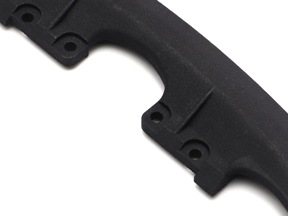 The skid plate wraps around under the front bumper and protects the chassis by absorbing front end impacts.