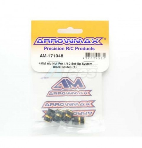 • Factory description: Arrowmax 4MM Aluminium Nut For 1/10 Set-Up System Black Golden (4)