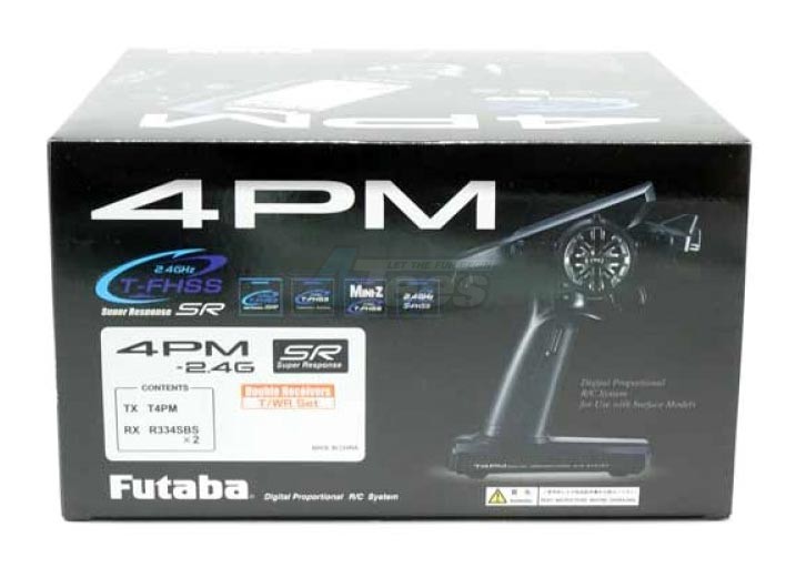 This is Futaba 4PM 2.4GHz 4-Channel Surface Transmitter w/ R334SBS Receiver x2. The system features the ultra-fast T-FHSS SR signal transmission and the new 2.4GHZ R334SBS 4-channel receiver with 2 antennas. Thus, the 4PM currently offers the fastest signal transmission with maximum reception reliability!