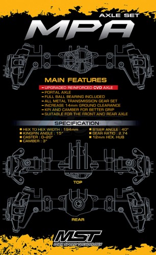 - Factory description: MST 1/8 CFX-W MPA Axle set