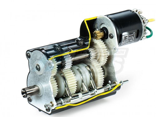 • Transmission: 3-gear transmission (shifts operated via transmitter)