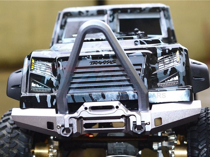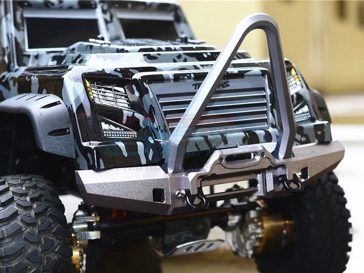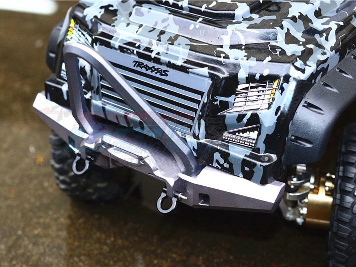 Factory description: GPM Racing Traxxas TRX-4 Aluminium Front Bumper With D-Rings (Spiked Design) - 5Pcs Set (Only Suitable For TRX4 Tactical Unit 82066-4)